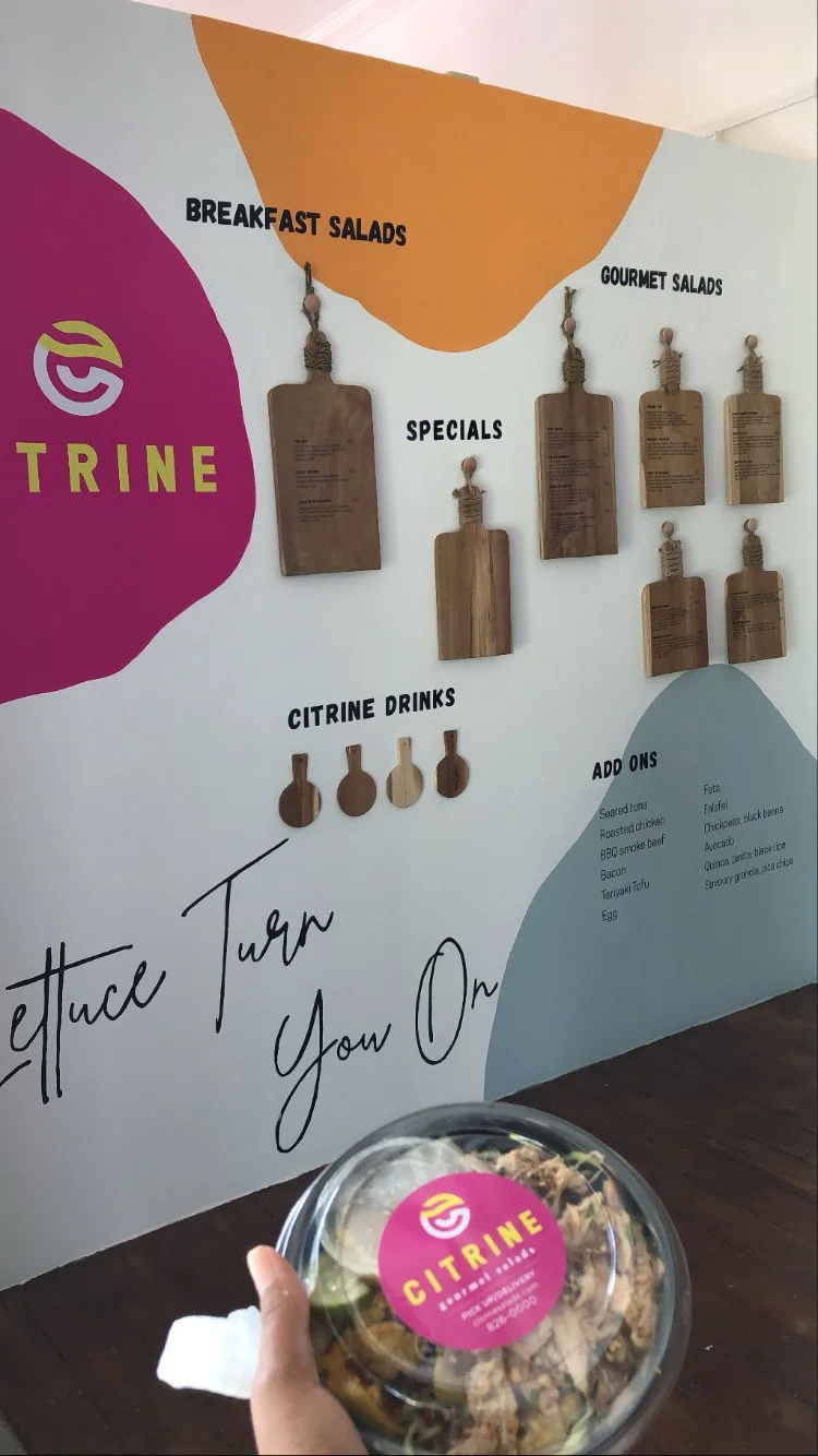 A blank wall in this pick-up Salad Bar was the perfect way to bring some character and brand development into this little space. So I created the perfect accent wall serving functionality as the menu and using wooden chopping boards as the interchangeable displays.